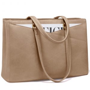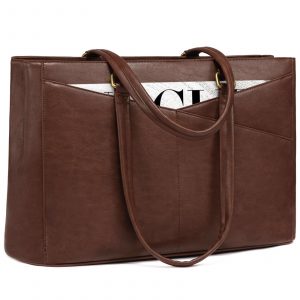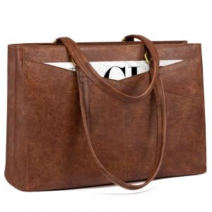 LOVEVOOK Vintage Leather Work Tote – 15.6 Inch Laptop Bag for Women, Waterproof Business Bag & Office Briefcase