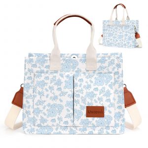 LHMTQVK Canvas Tote Bag for Women Crossbody Purses Tote Bags with Pockets Travel Bags Everyday Bag Work Bags Handbags (Blue Flowers)