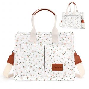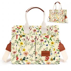LHMTQVK Canvas Tote Bag for Women Crossbody Bag Purses Tote Bags with Pockets Travel Everyday Bag Work Bags Handbags(Retro Flower)