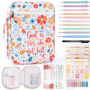 XKDOUS Bible Cover Case for Women 24 Pcs Bible Bags Kit w/Bible Accessories Study Supplies Carrying Book Case with Strap Large Church Book Holder Christmas Gifts for Lady