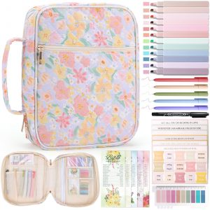 XKDOUS Bible Cover Case for Women Floral Pattern Bible Bag with Handle, Pens & Tabs, Study Supplies Carrying Case Organizer Portable Church Book Holder