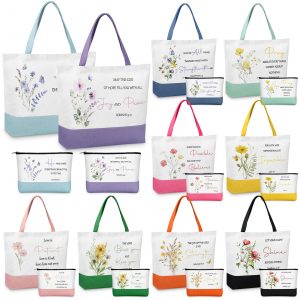 Sunnymove 20 Pcs Christian Gift Bible Tote Bags Christian Makeup Pouches Inspirational Bible Verse Cosmetic Bags with Zipper Christmas Religious Gift Flowers Reusable Grocery Religious Party Supplies