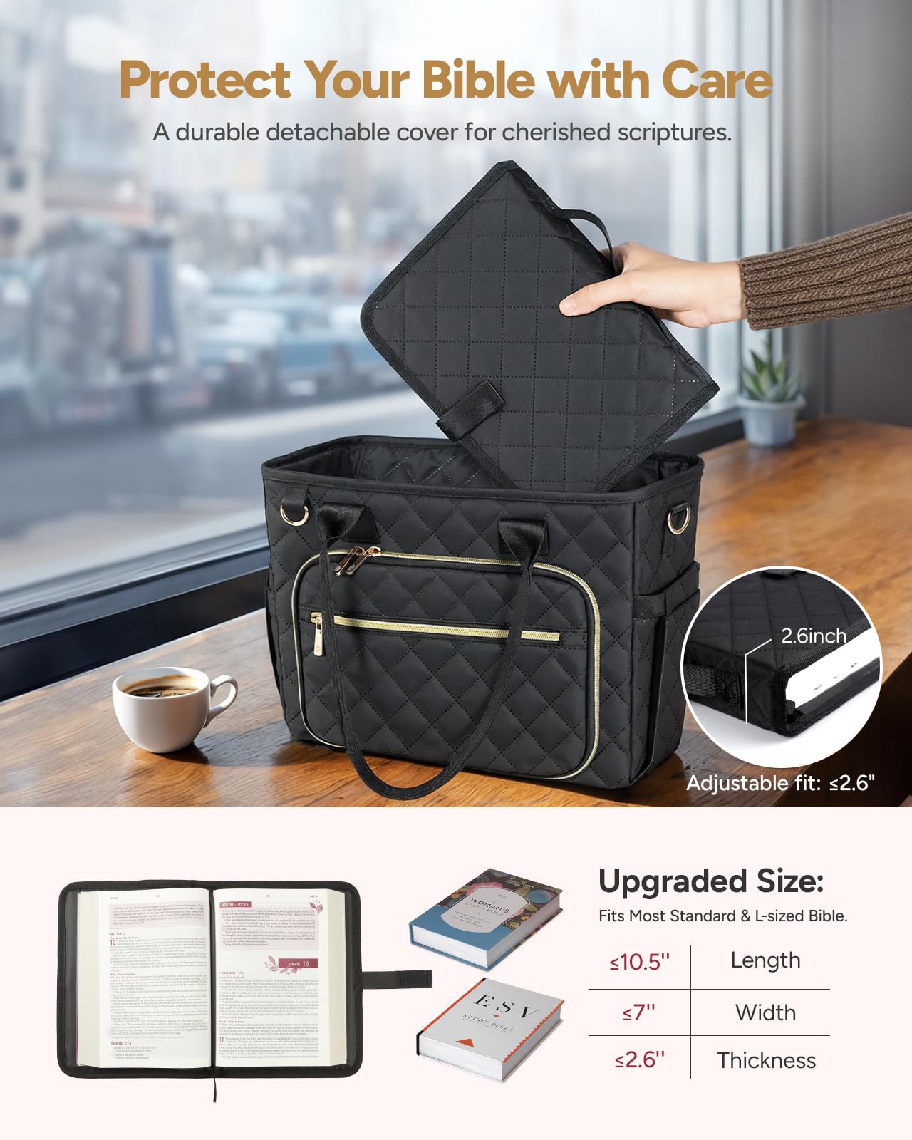 - 【Large Bible Cover Protection】Each Bible case includes a detachable Bible book cover for easier reading while protecting your Bible and extending its lifespan. The upgraded size fits Bibles up to 7″ x 2.6″ x 10.5″, and is suitable for all M and L size Bibles.