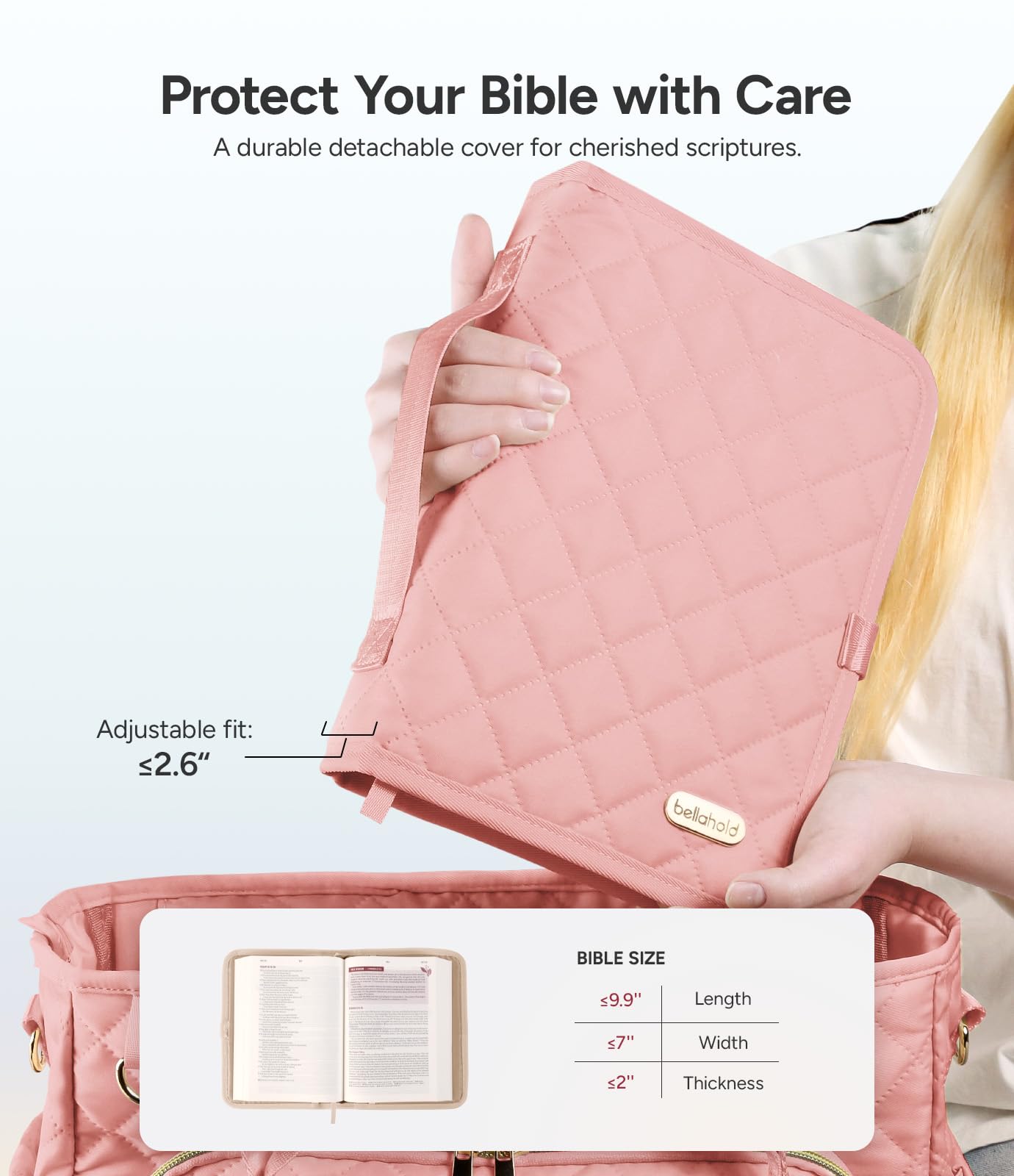- 【Large Bible Cover Protection】Each Bible carrier includes a detachable book cover for easier reading while protecting your Bible and extending its lifespan. The upgraded size fits Bibles up to 7″ x 2.6″ x 10.5″, and is suitable for all M and L size Bibles.