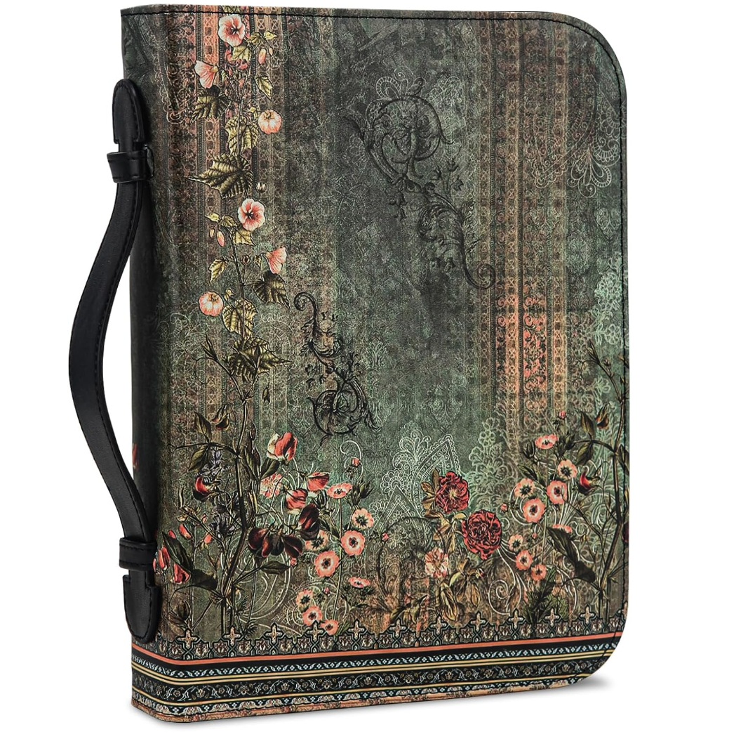 Bible Cover, Bible Carrying Book Case for Men Women,Protective Church Organizer Holder Bag with with Handle and Zippered Pocket, Christian Gift for Girls Boy and Men(Boho Floral, XL)