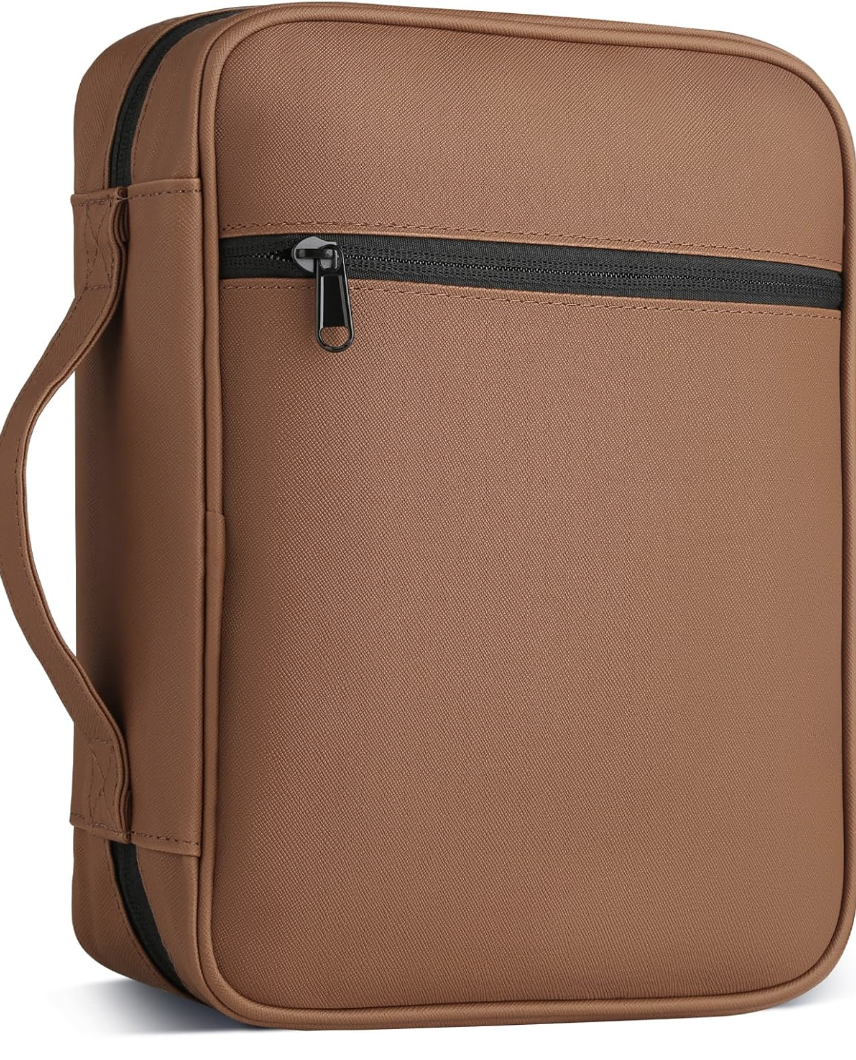 - Professional Bible cover protection:The Bible cover case is with multiple ways to use, you can use it as a book cover, makeup bag, ipad case, bible study book cover and more,Bible bag size:11 X 8.3 X 2.6 inch, very suitable for standard size bibles