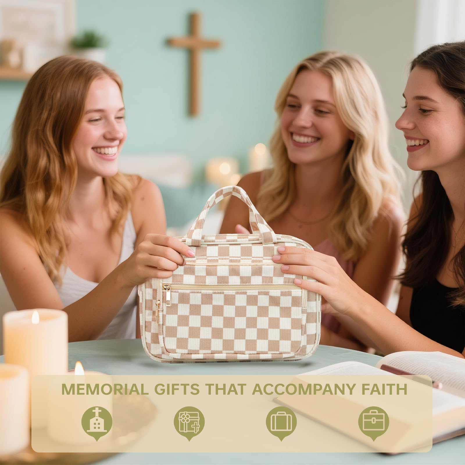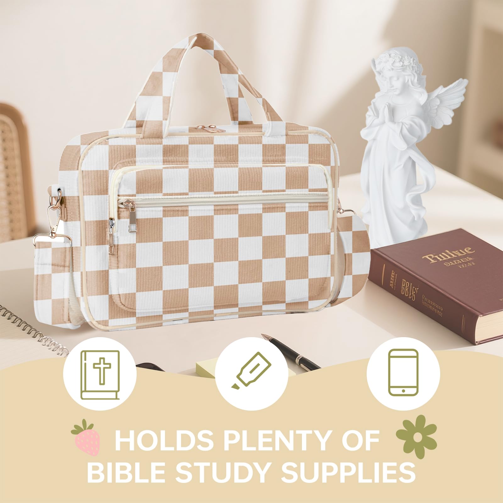 - Charming & Practical Tote: With quilted detailing and sturdy cotton handles, this tote makes it easy to carry your Bible in style—whether to church, Bible study, or work.
