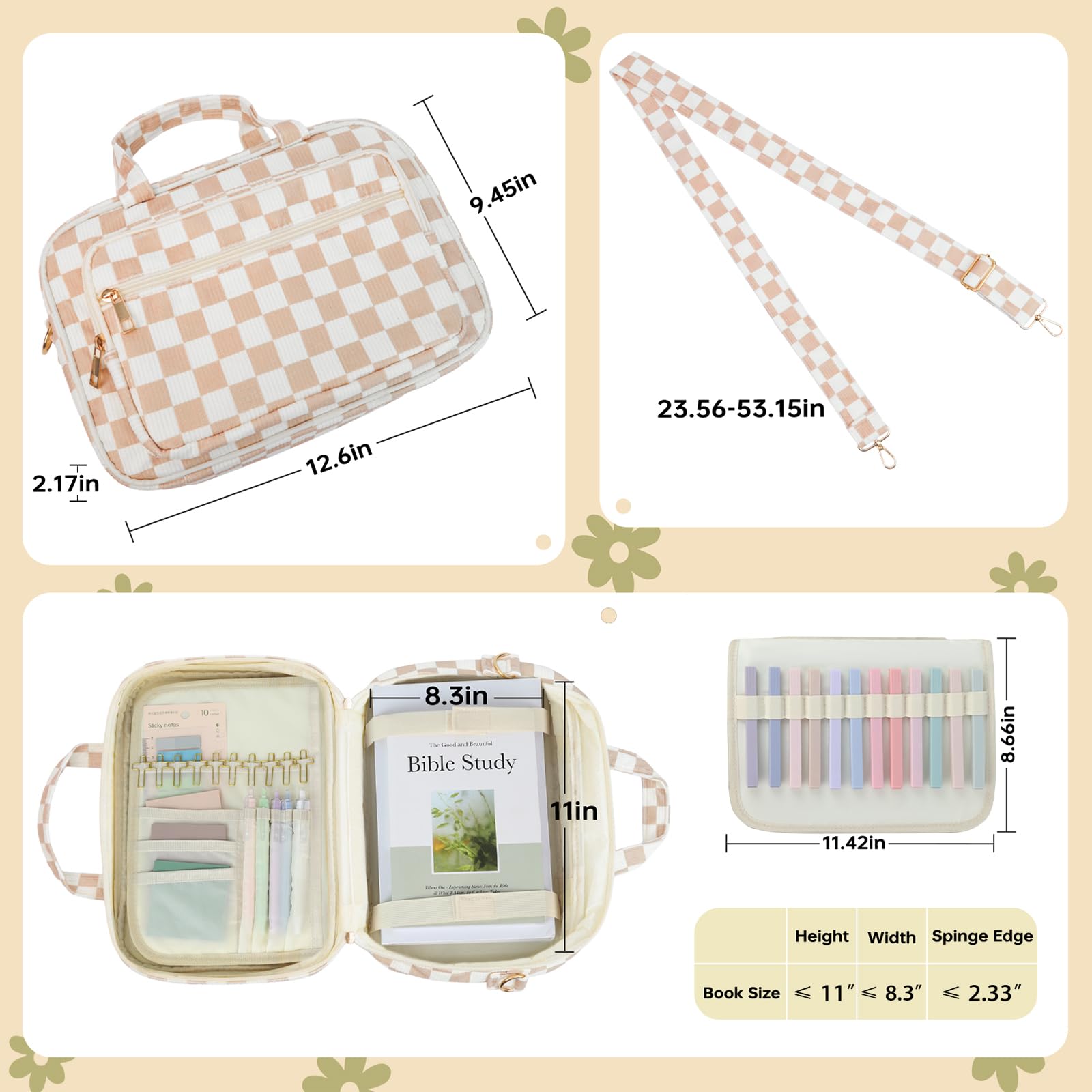 - Spacious & Organized Interior: Designed with women in mind, this large Bible cover includes multiple pockets for pens, highlighters, bookmarks, and notebooks. The front zippered pocket keeps your phone, wallet, or small essentials within reach.