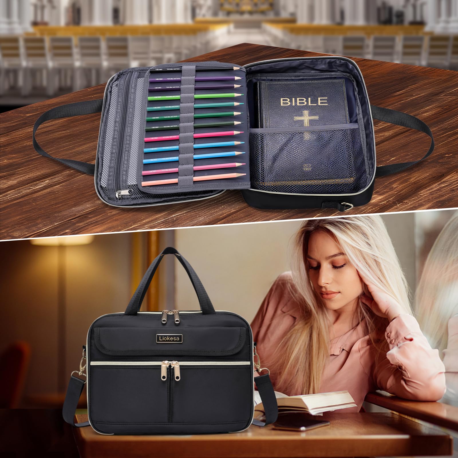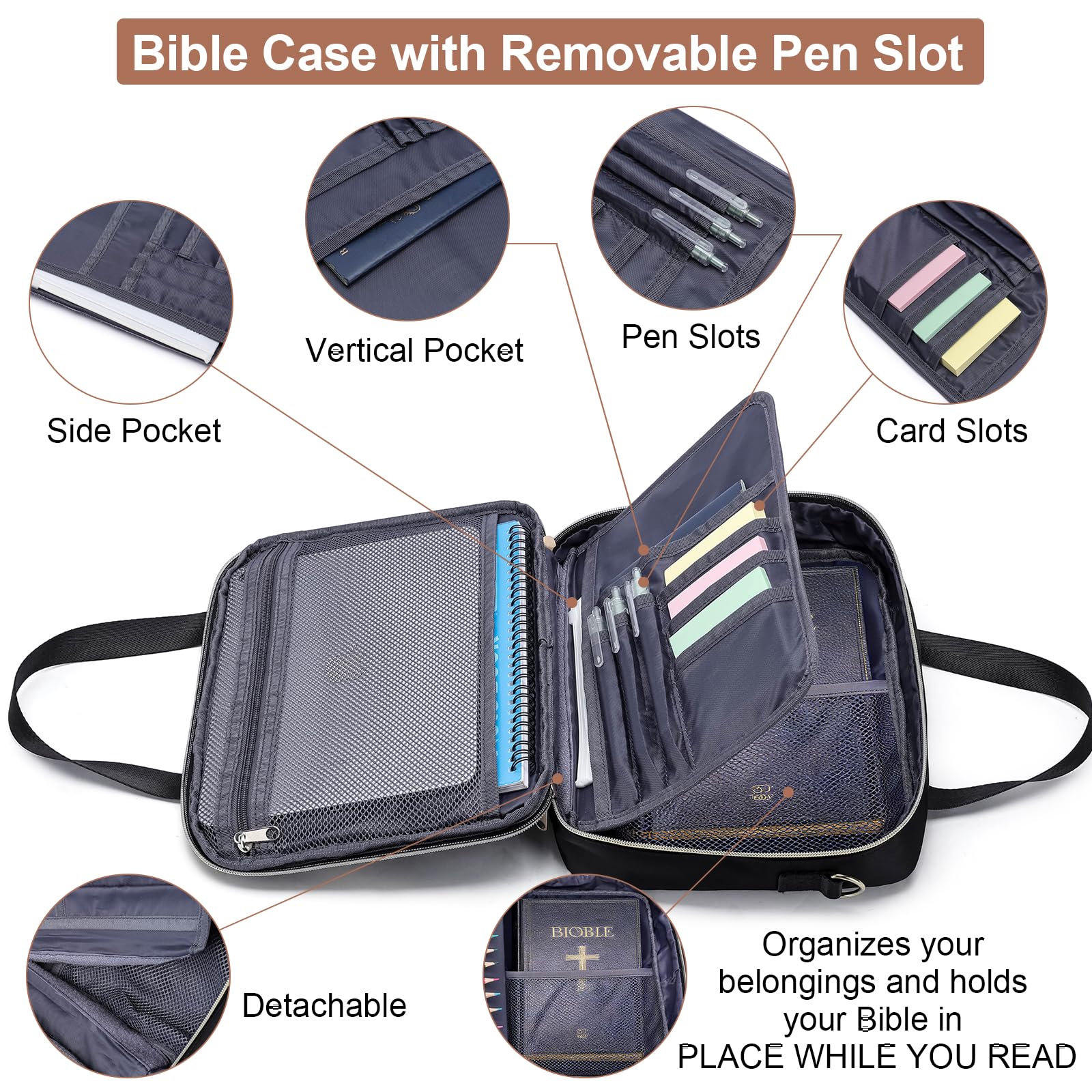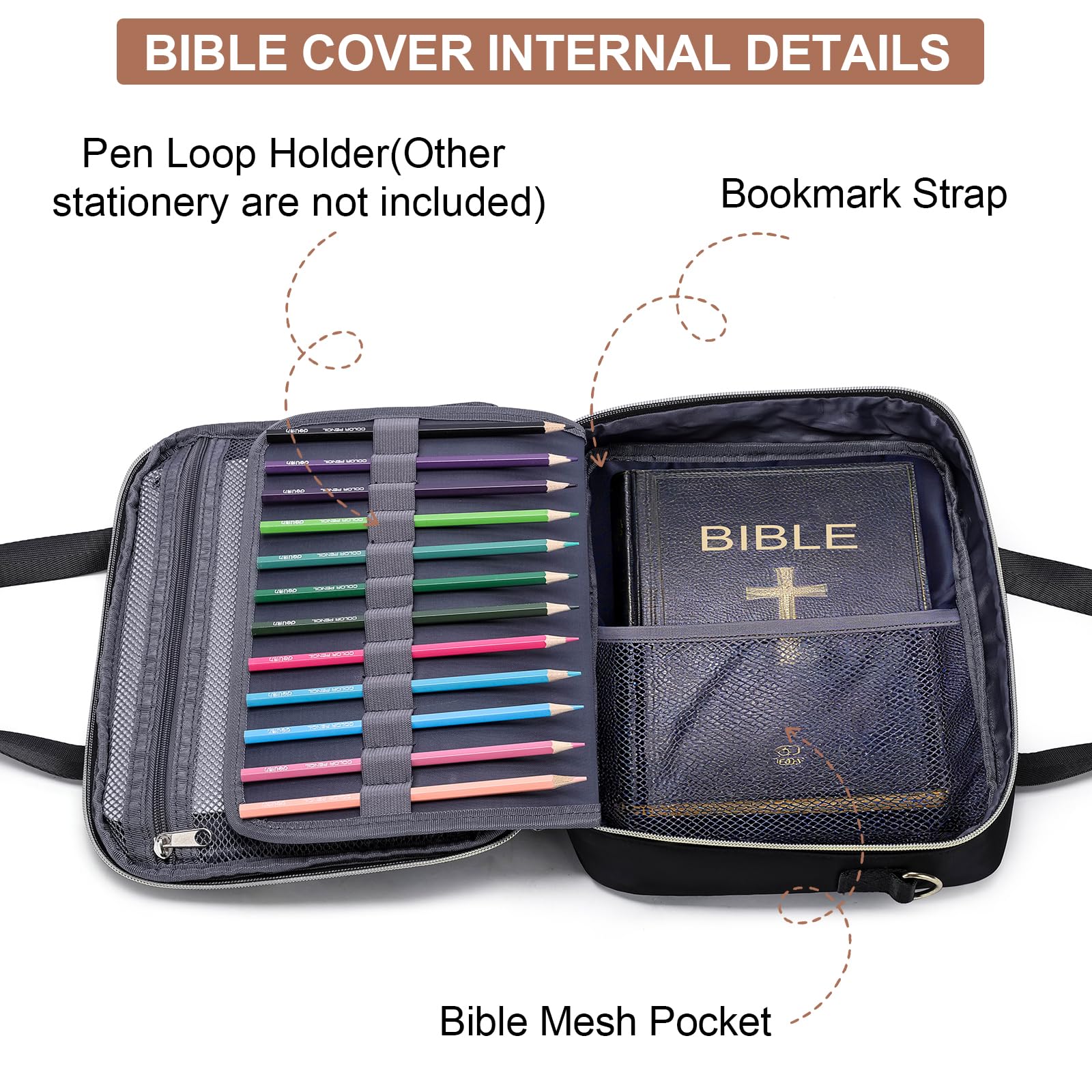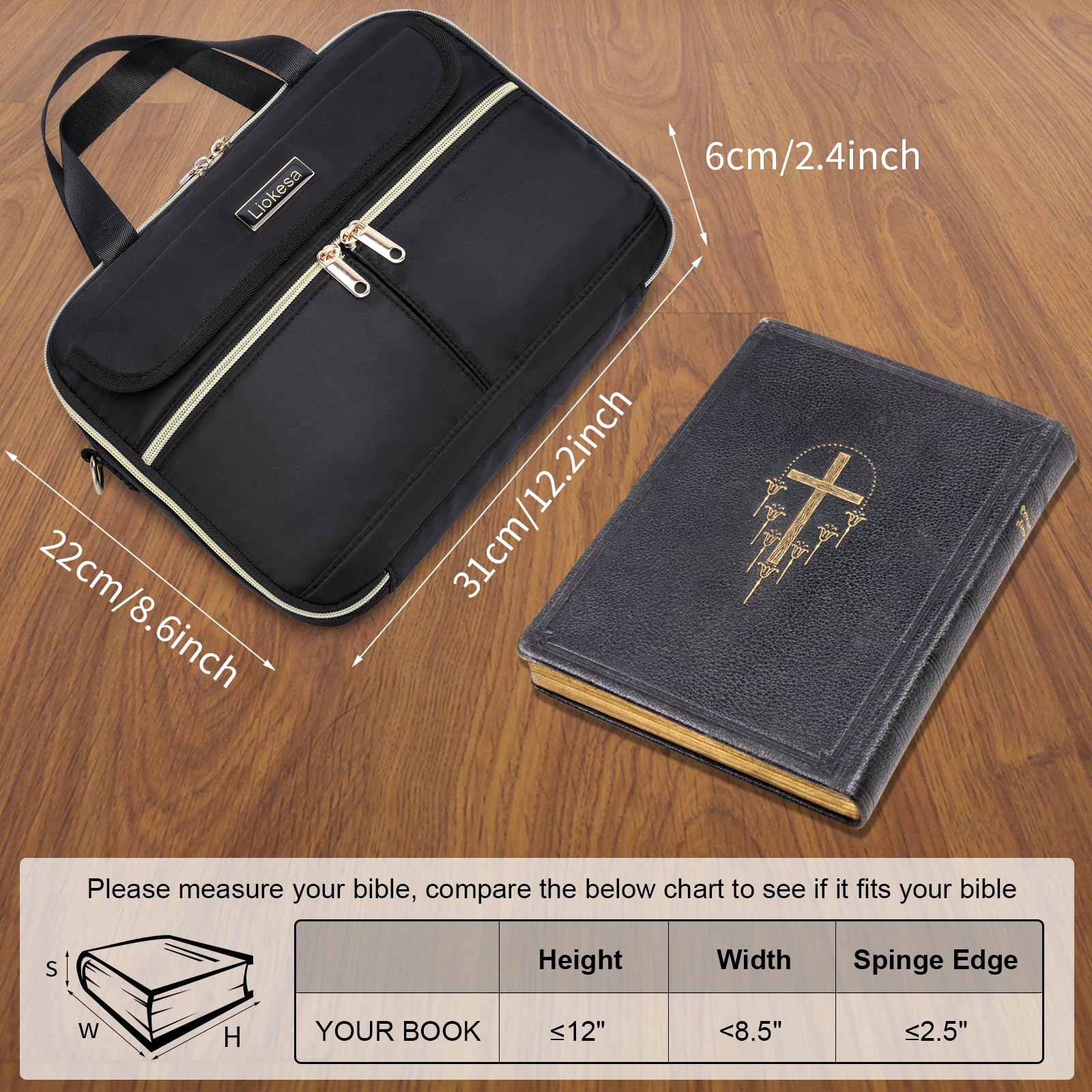 - Premium Material & Quality: This bible case crafted from high-quality waterproof nylon fabric and robust gold metal zippers. This black bible bag ensures long-lasting protection. Perfect for safeguarding your holy book, notebooks, and bookmarks from spills and wear, making it an ideal choice for church services and bible study groups.