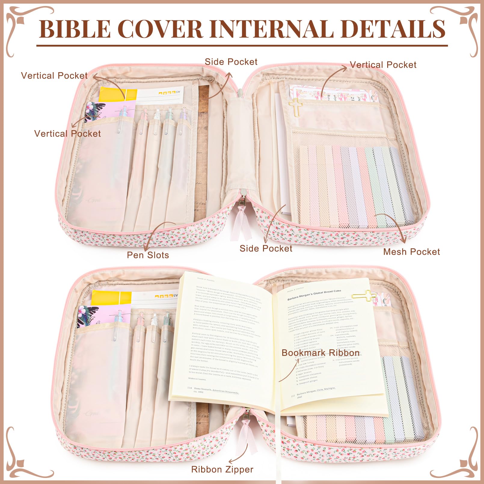 - 🖊️ Organized Interior with Multi-Purpose Pockets Stay organized with inner compartments designed for Bible journaling accessories. Store pens, sticky notes, bookmarks, and notebooks with ease. This bible cover case for women keeps all your study tools in one place for efficient and inspiring devotion time.