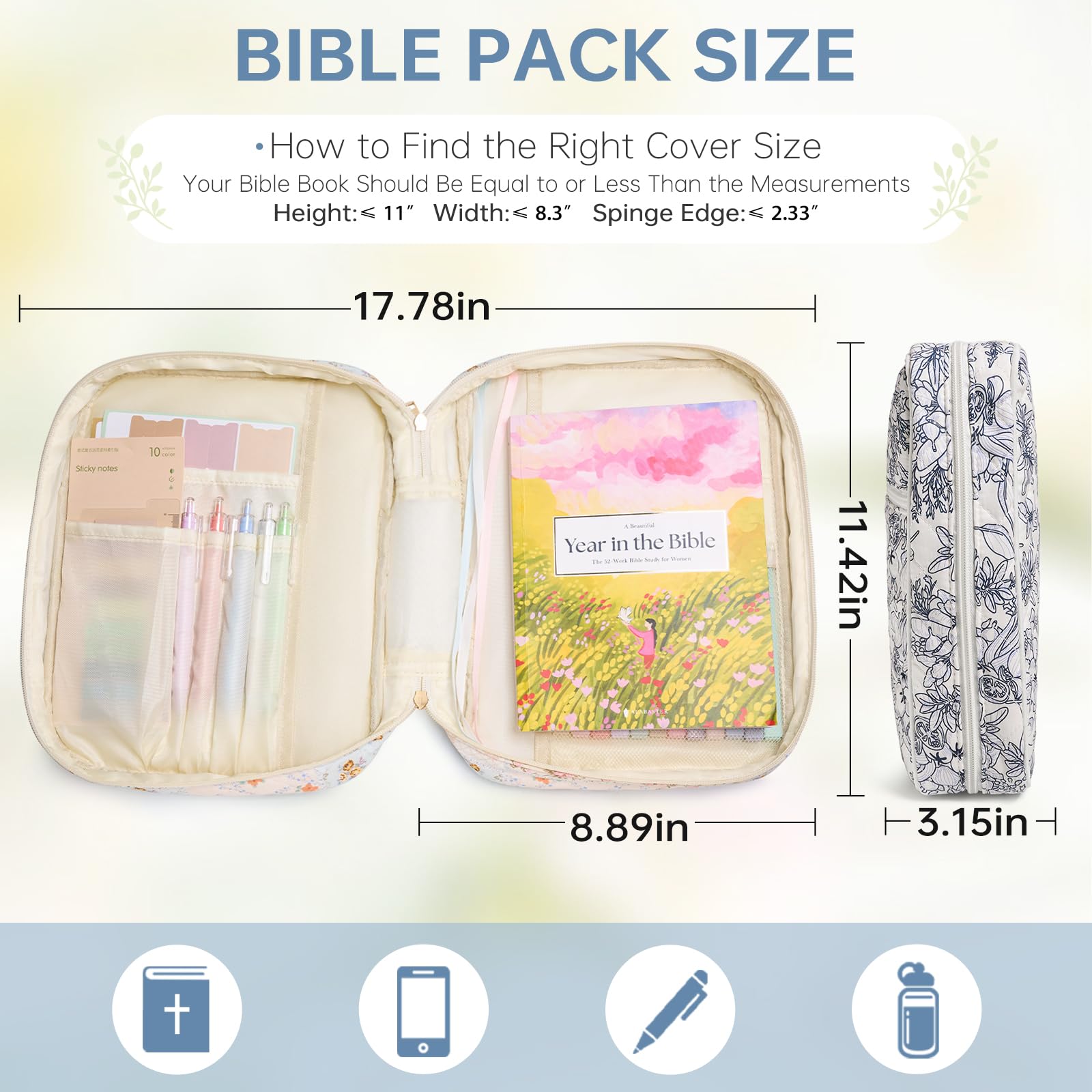 - Bible Case Size: 11.42″ x 8.89″ x 3.15″ provides full protection for your Bible, preventing daily wear and tear. Whether your Bible is large or small, you will find the perfect fit.