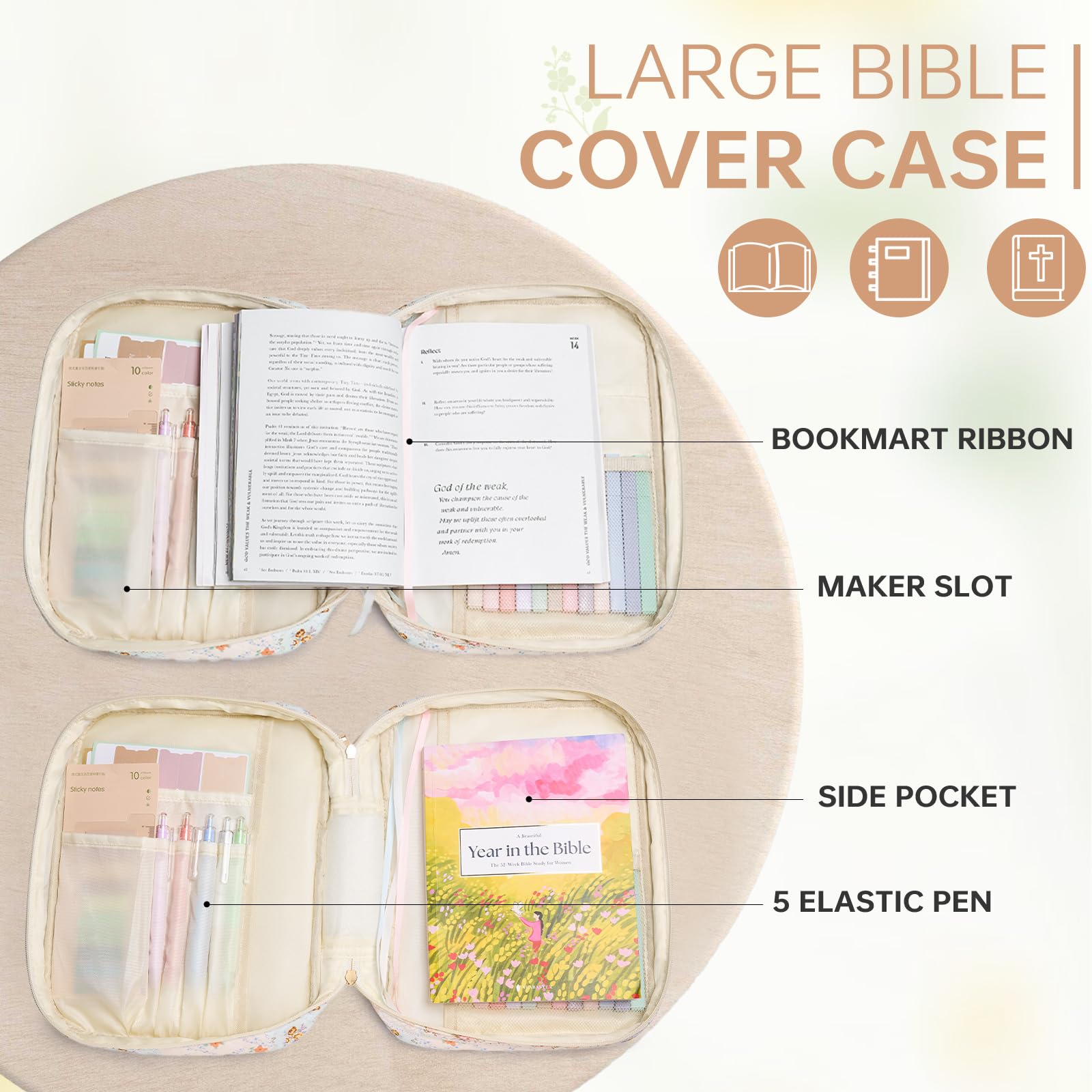 Details: Bible Cover Case for Women Large Bible Cover with Durable Handle Quilted Bible Carrying Case for Girls Bible Study Supplies Accessories Christian Gifts for Women