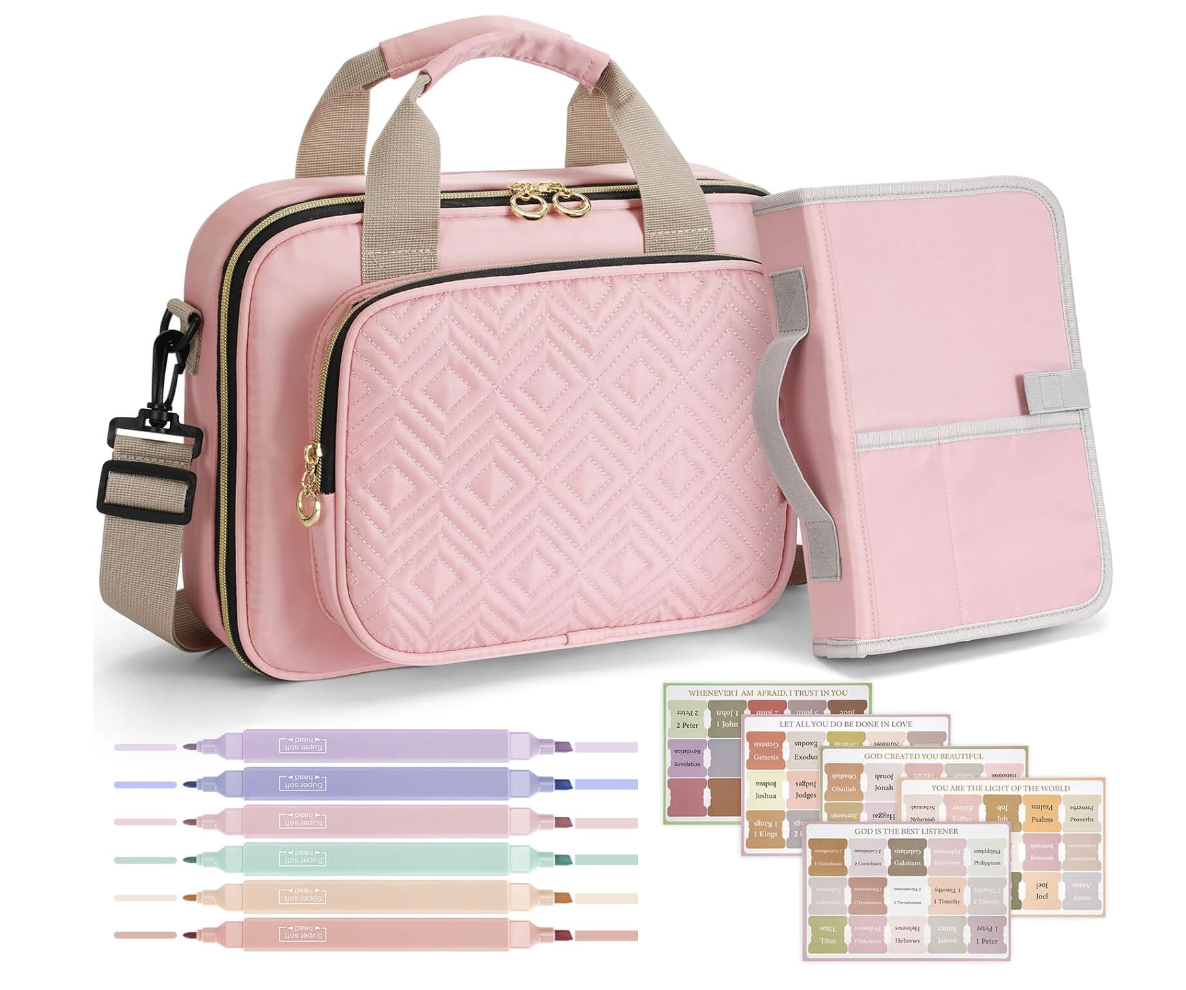 - Accessories: With the bible bag, you will receive 6pcs dual tips highlighters and 75pcs bible tabs. The cute highlighters are soft and no bleed, provide smooth writing. We Make your Bible study more organized and inspiring