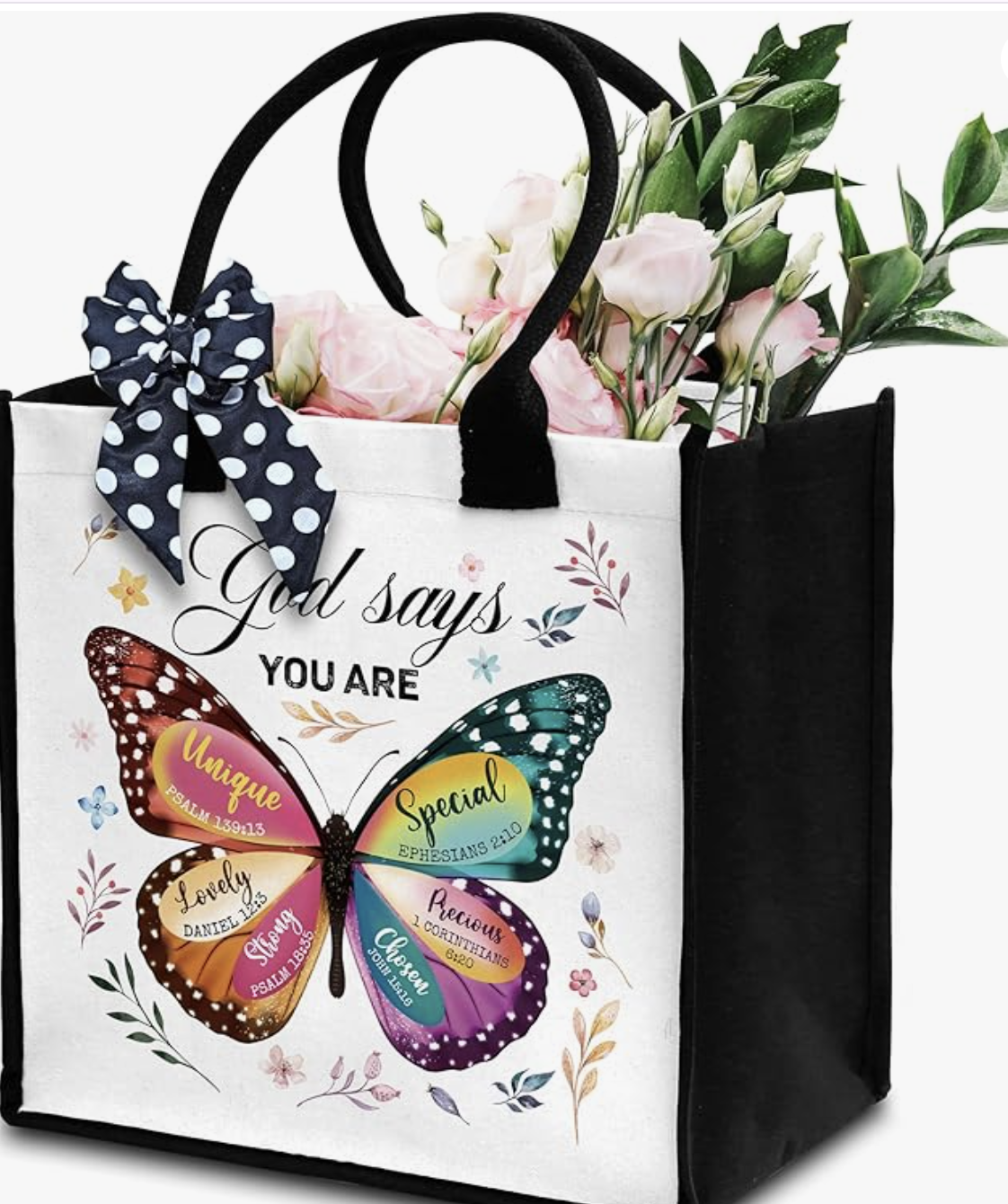 Christian Tote Bag For Women, God Says You Are Totes, Bible Verse Canvas Tote Bag For Traveling Shopping, Butterfly Shoulder Bag With Ribbon