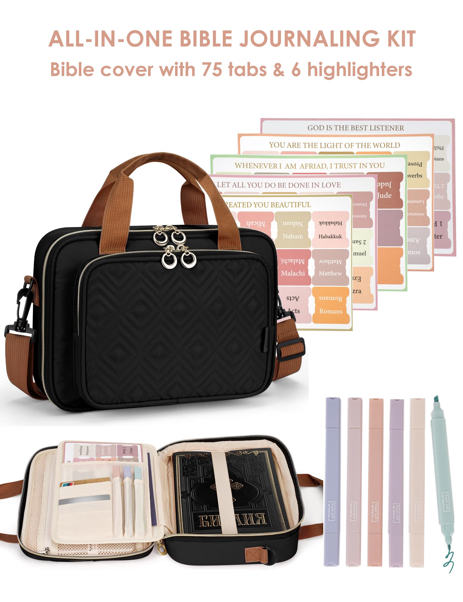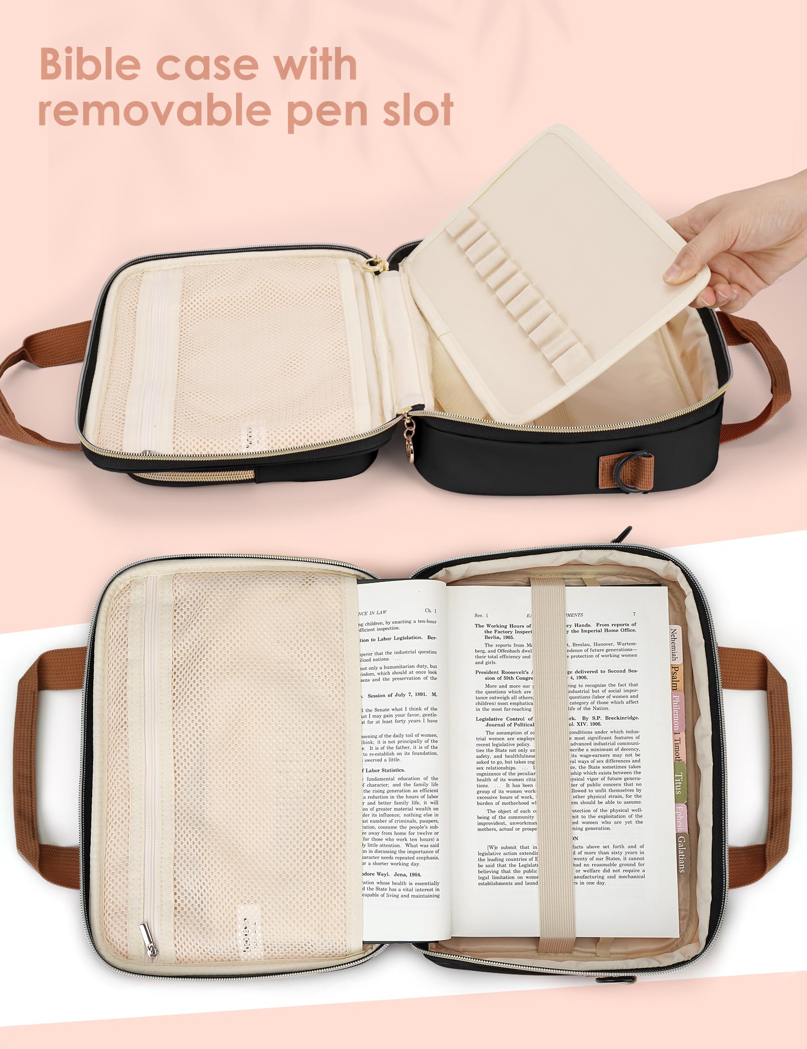 - 【Multi-functional】This large bible carrying case can be used as a handbag, briefcase, bible tote bag, makeup bag, book cover, tablet case, Bible study bookbag, etc. You can carry it to churches, schools, libraries, and study rooms at any time for your bible study, worship, or pilgrimage.