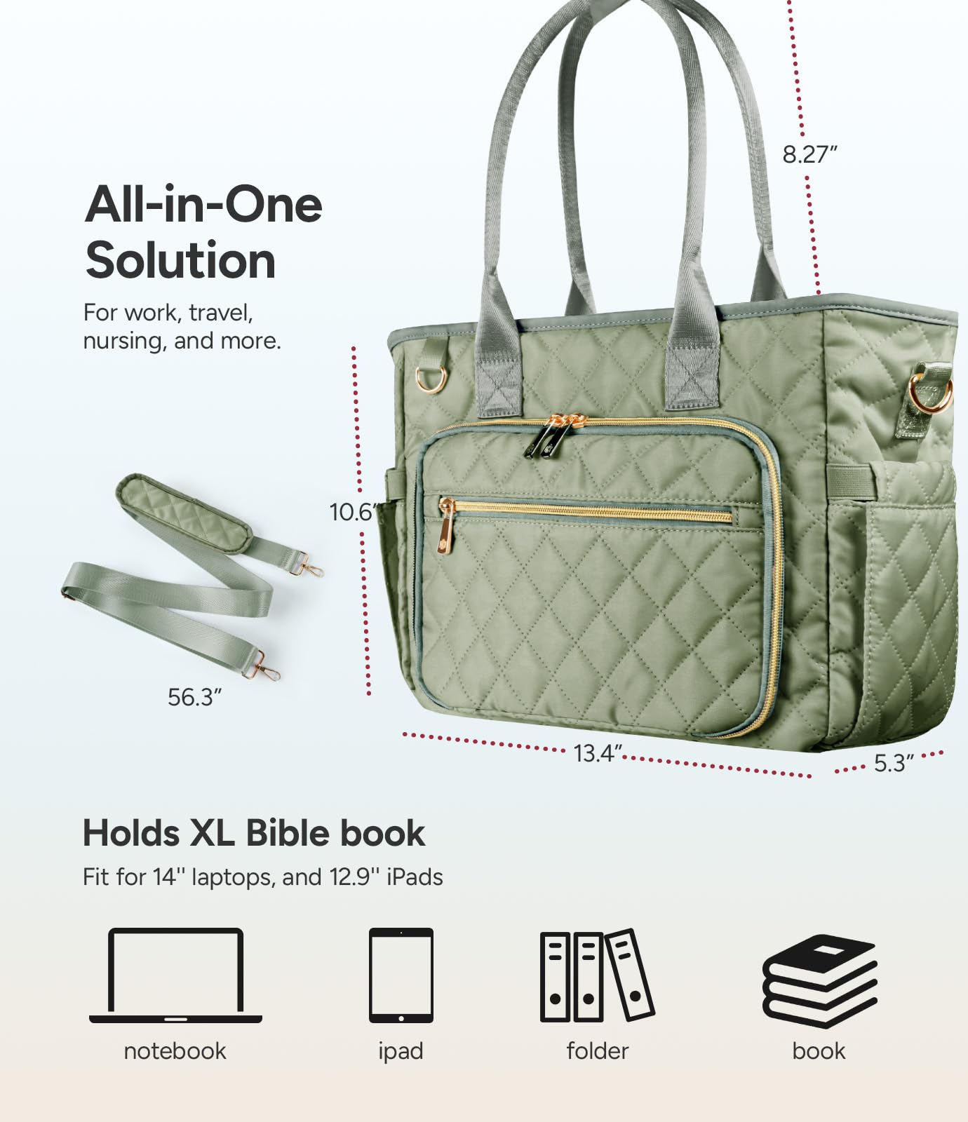 - 【Multi-functional Bible Cover Case】Our Bible Carrier measures 13.4″x 10.6″ x 5.3″, perfect for Bibles, 14” laptops, and 12.9” iPads. It doubles as a briefcase, laptop bag, makeup kit, toiletry bag, and diary organizer.