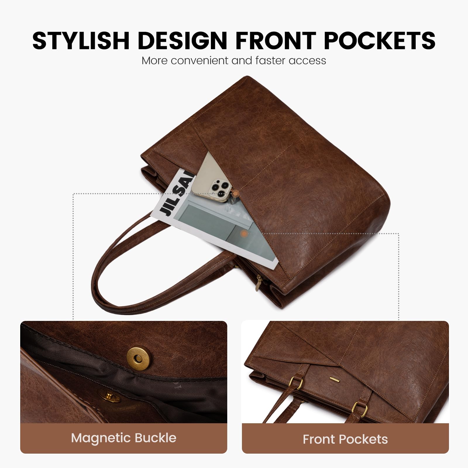 - Durable & Practical Work Bag: This work tote bag is made of durable, high-quality water-resistant and scratch-resistant soft PU leather and polyester lining. Metal feet protect your bag from damage and this bag will stand the test of time.