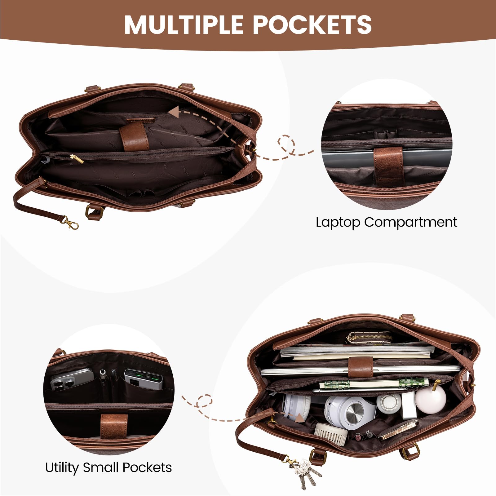 • Durable & Practical Work Bag: This work tote bag is made of durable, high-quality water-resistant and scratch-resistant soft PU leather and polyester lining. Metal feet protect your bag from damage and this bag will stand the test of time.