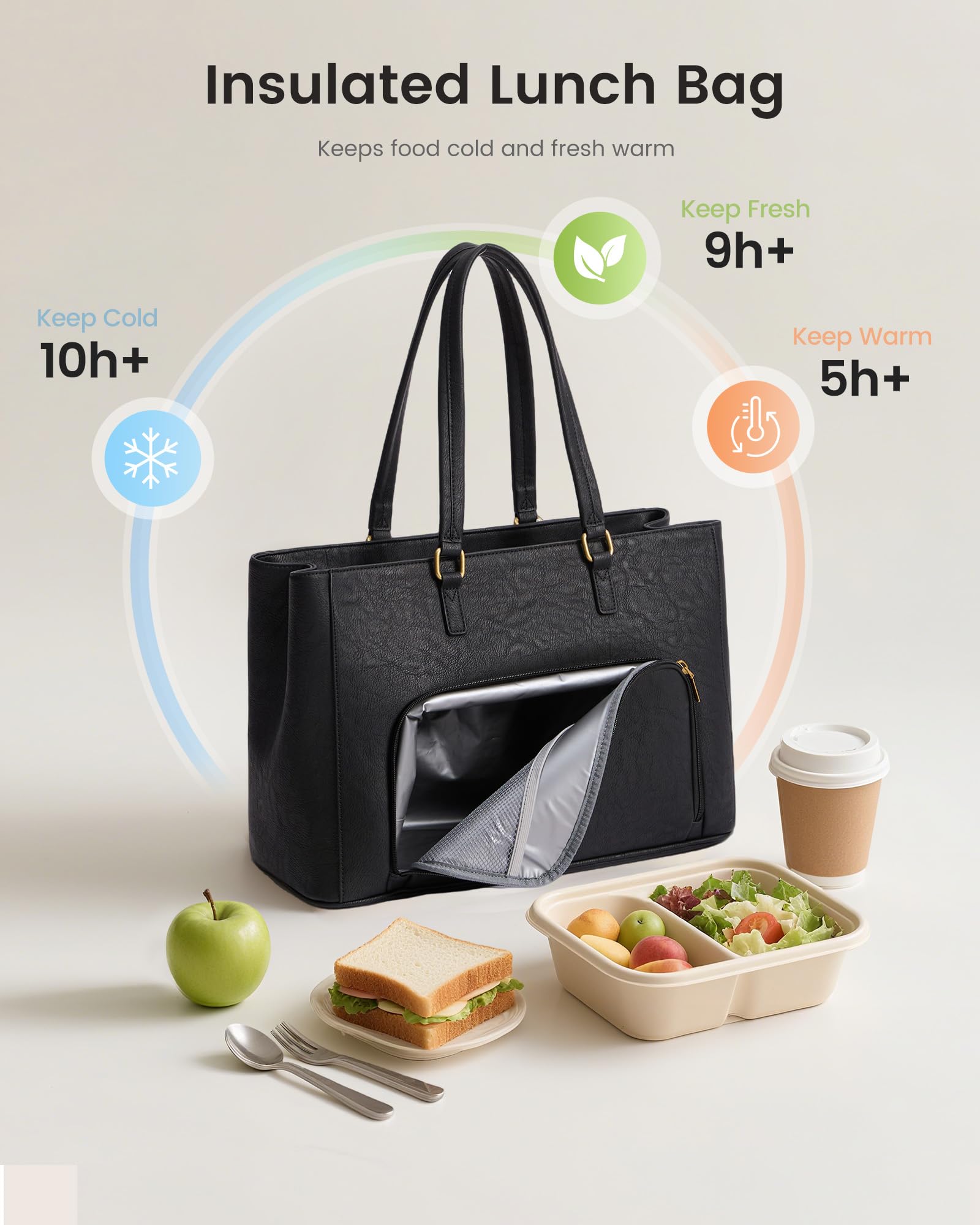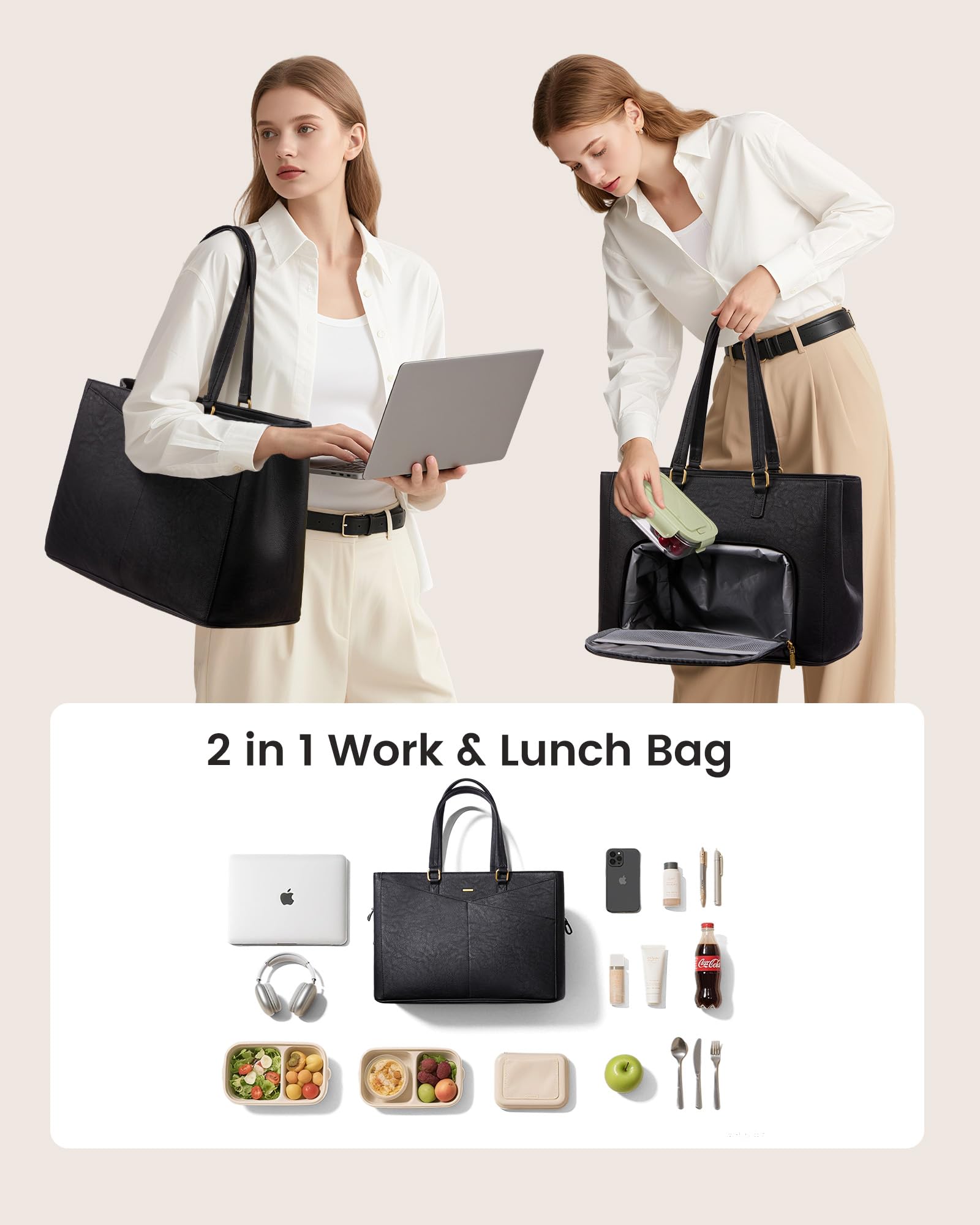 LOVEVOOK Lunch Bag, Tote Bag for Women with Insulated Lunch Compartment, Laptop Work Tote Bag for Teacher, Nurse, Travel, College, Daily,15.6 Inch