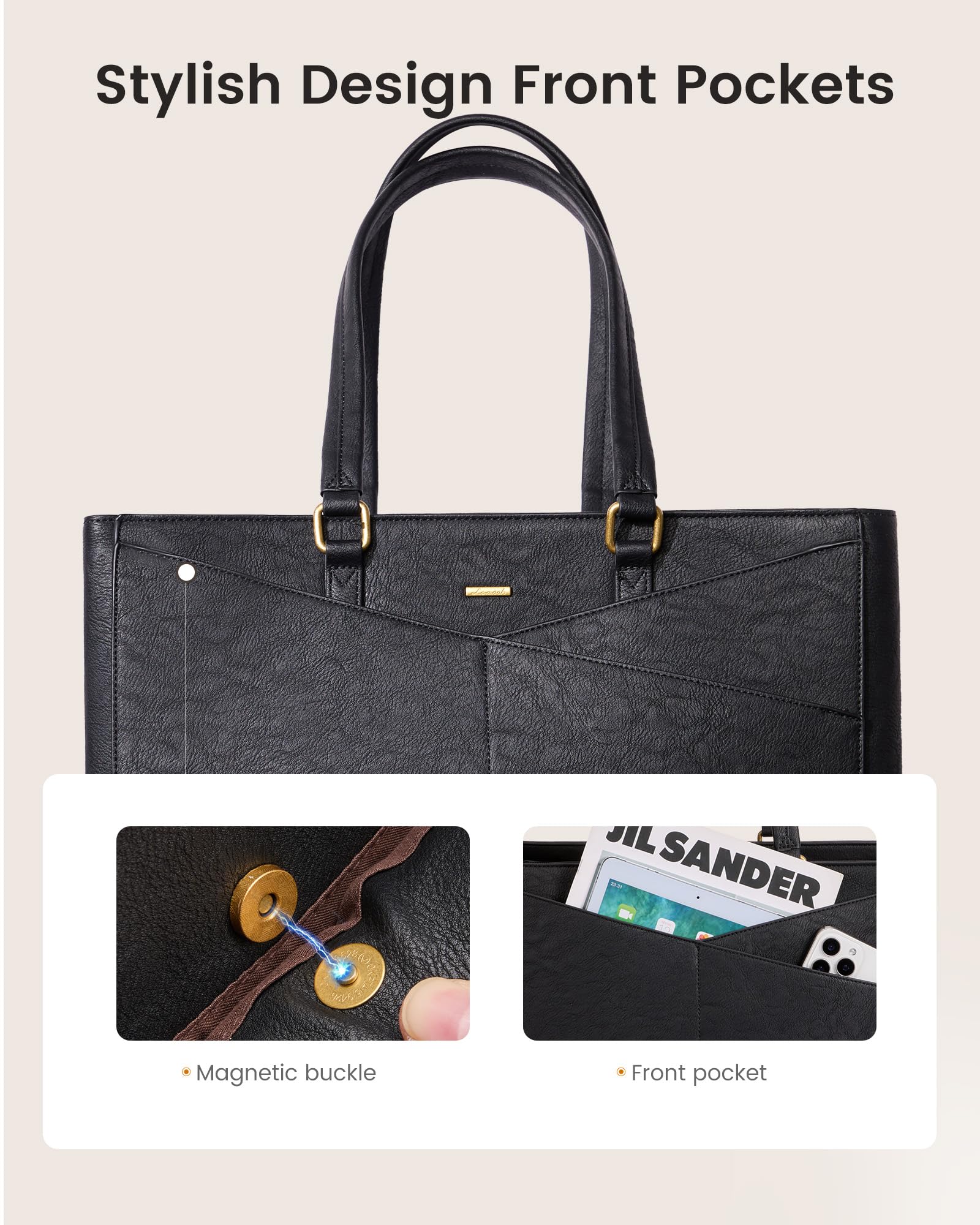 • 🔎Durable & Practical Work Bag🔍This work tote bag is made of durable, high-quality water-resistant and scratch-resistant soft PU leather and polyester lining. Metal feet protect your bag from damage and this bag will stand the test of time.