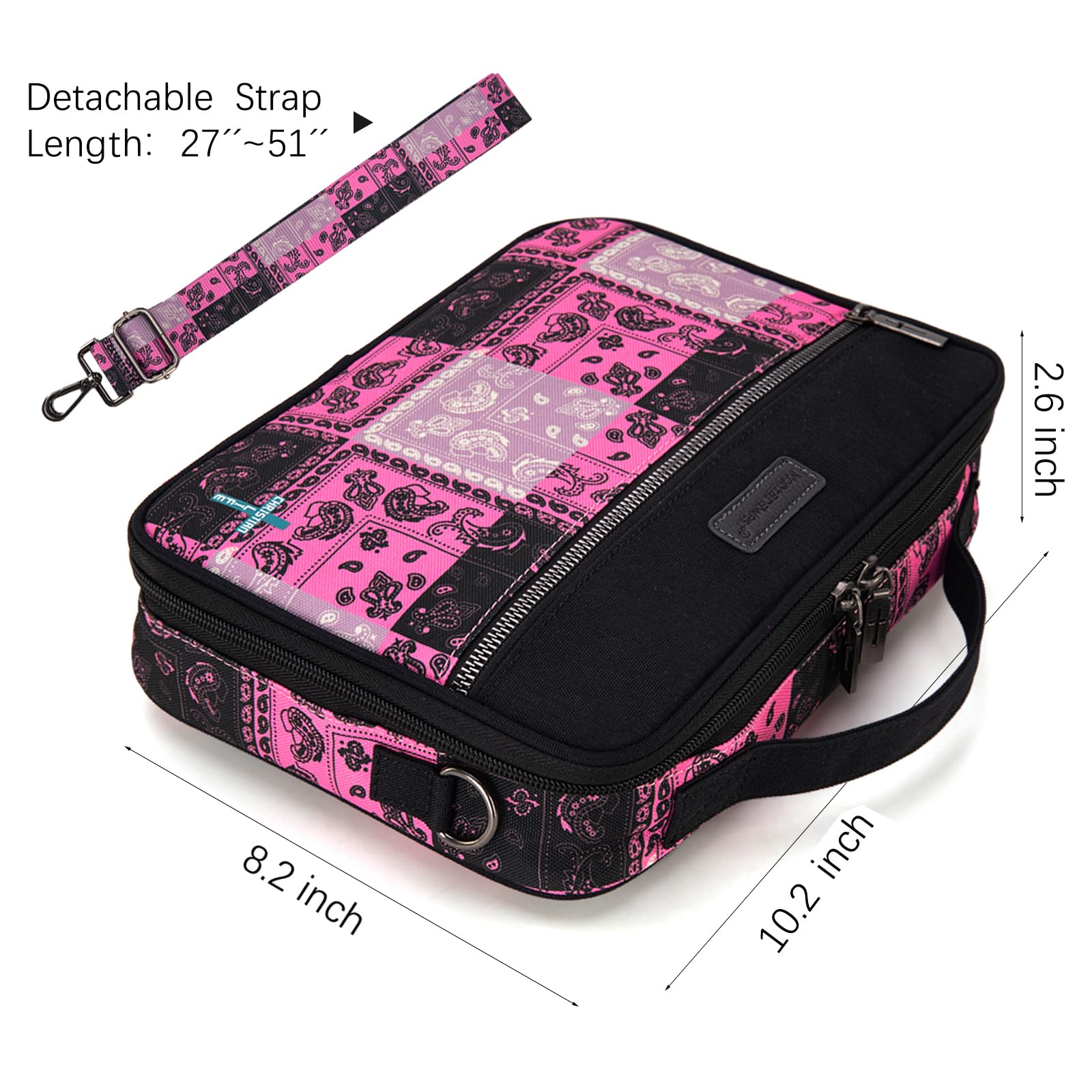 • Versatile Design: This bible cover offers both handheld and crossbody strap options, making transport a breeze and ensuring comfort for all users