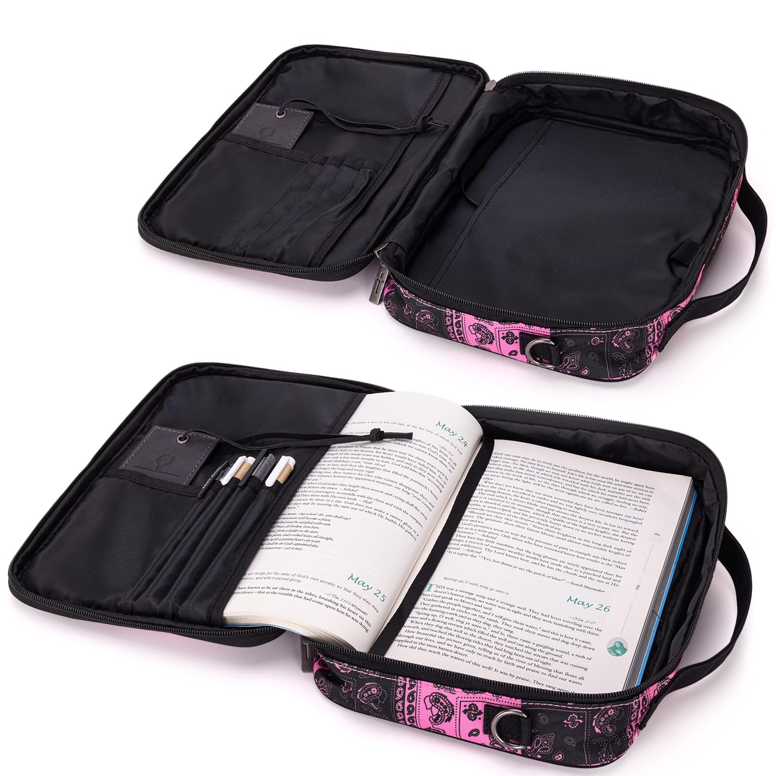 • Size: Specifically designed at 10.2″ x 8.2″ x 2.6″, this book cover fits most standard bibles and provides storage for additional items on the go