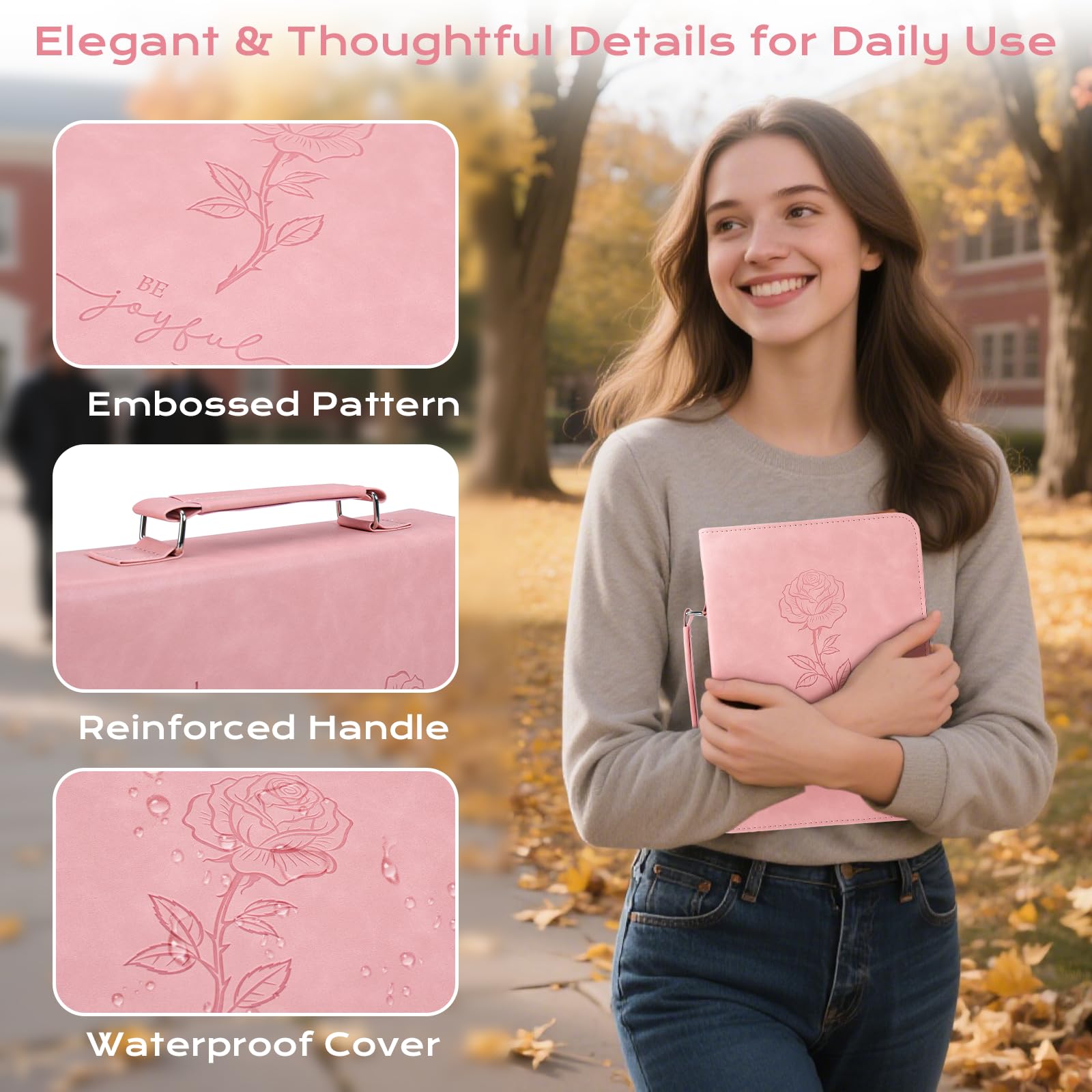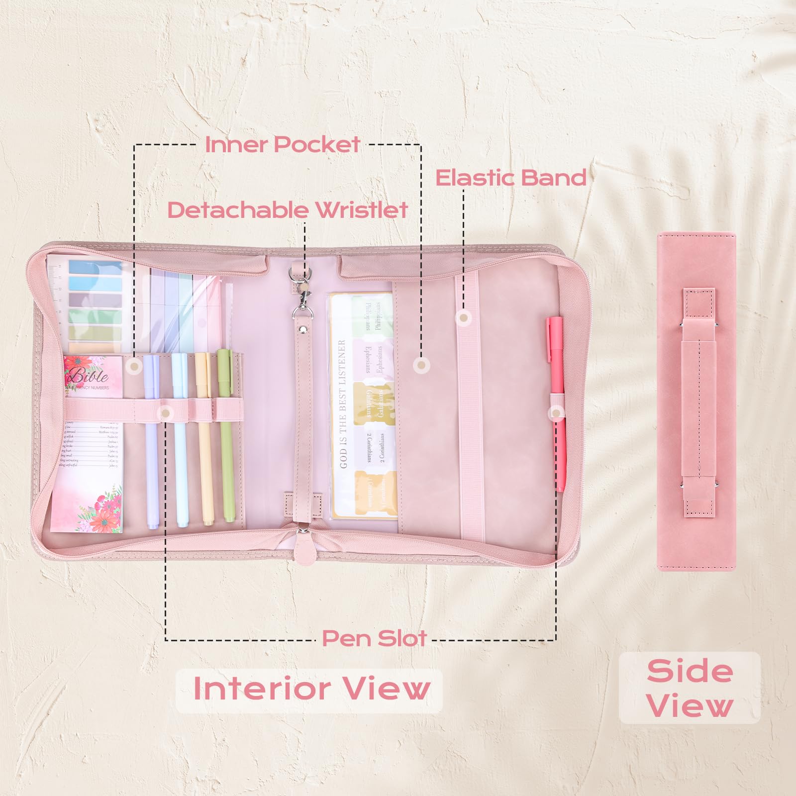 - Spacious & Organized Interior: With inner pocket, pen loops, a removable wrist strap, and an elastic page marker, this bag keeps all your study supplies neatly in place. It offers ample space for a Bible, pens, tabs, and other small accessories.