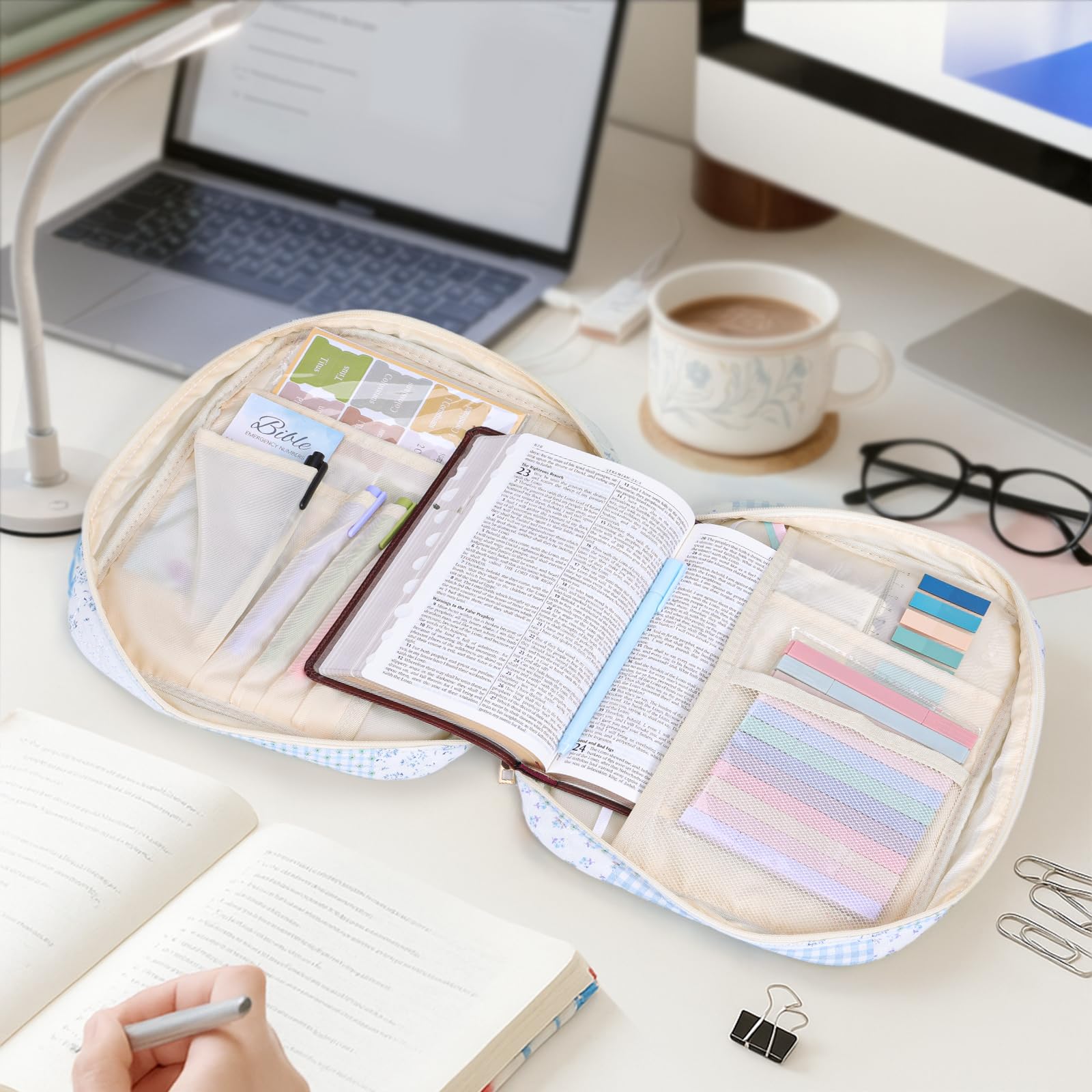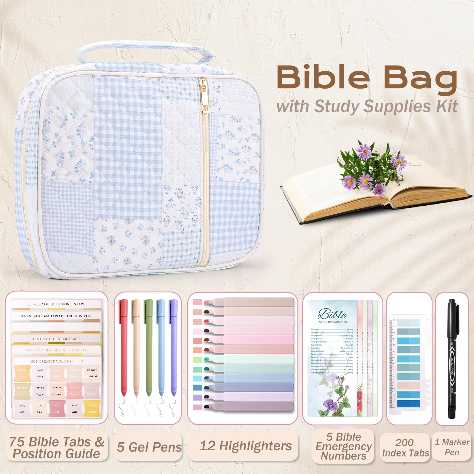The spacious interior (11″x8.6″x2.5″) neatly organizes your bible, books, and essentials. Includes helpful study accessories: Bible tabs, index tabs, bookmarks, and pens. Perfect for church, study groups, or daily use.