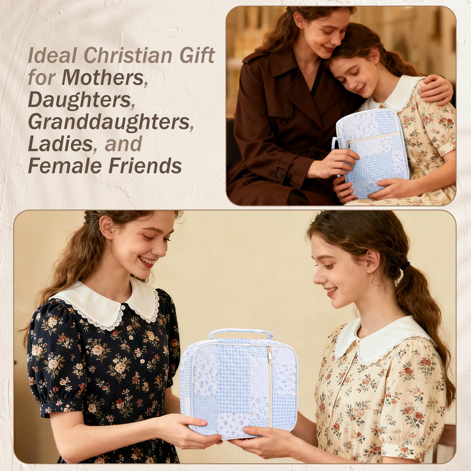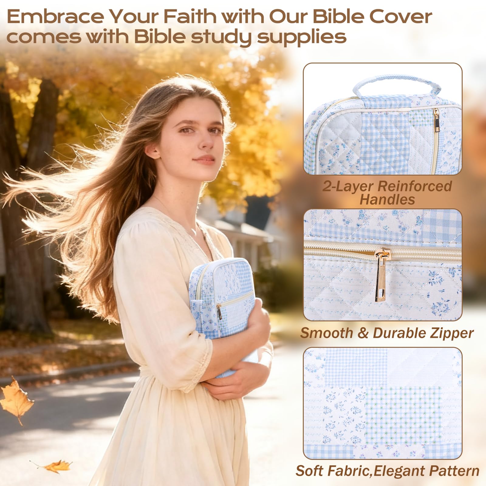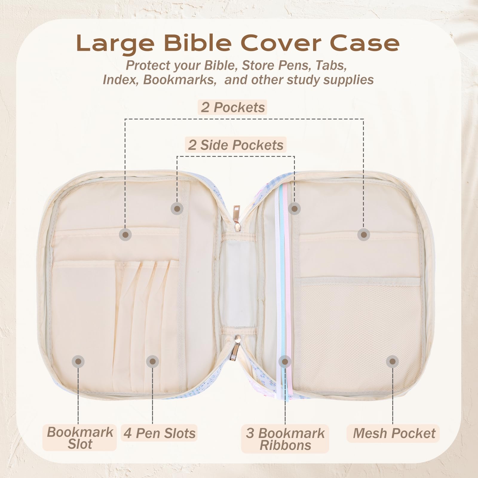 XKDOUS Bible Cover Case for Women Large Bible Bags with Durable Handle Quilted Carrying Case Church Book Holder Bible Study Supplies Accessories for Christian Gifts