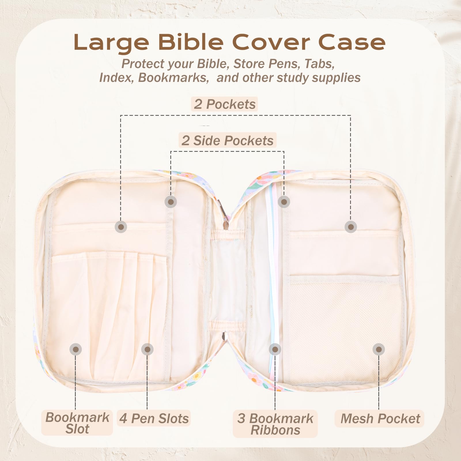 • Sturdy Carry Handles: Equipped with sturdy carry handles, the bag provides reliable support for your Bible and study items. The handles keep their shape and strength after repeated use, letting you carry the bag comfortably in your hand for trips to study groups or daily outings.